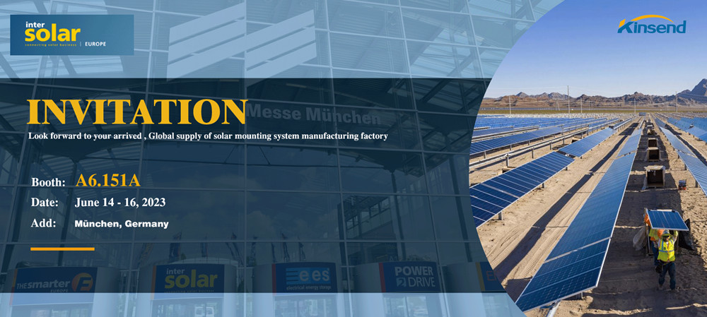 Kinsend wird auf dieser Ausstellung eine Vielzahl von Produkten präsentieren: Bodenmontagesysteme , Ziegeldachsysteme , Flachdachmontagesysteme, Parkplatzmontagesysteme und eine Vielzahl von Photovoltaik-Montagezubehör . Wir freuen uns darauf, Sie auf der Ausstellung zu treffen, um weitere Photovoltaik-Halterungsinstallationssysteme zu besprechen Lösungen und bieten die besten Lösungen für Ihr Projekt.