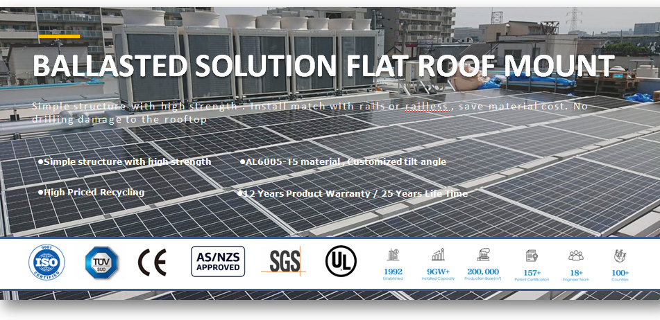 Das Ballaststativ- Flachdachmontagesystem ist relativ einfach und schnell zu installieren, was die Installationszeit und die Arbeitskosten reduzieren kann. Das Ballaststativ-Flachdachmontagesystem ist eine effektive und effiziente Lösung für Flachdach-Solarmodulinstallationen , die Stabilität und Sicherheit erfordern, ohne dass eine Dachdurchdringung erforderlich ist.