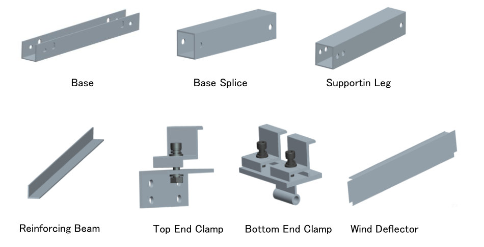 Al6005-T5 für Aluminiumprofile und Klemmen. Edelstahl zur Befestigung von Bolzen und Muttern. |