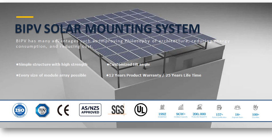 Das BIPV- Solar-Montagesystem wird typischerweise auf flachem, offenem Gelände oder auf dem Dach angebracht . Die montierte Solarkonstruktion mit Betonsockel ist einfach zu bauen. Es ist viel einfacher zu installieren. Die Hauptkomponenten der Solar-Montageregale werden in unserem Werk weitgehend vormontiert, wodurch Sie viel Zeit und Kosten für die Installation vor Ort sparen. Die Komponenten sind auch bei kleinen Teilen vollflächig eloxiert, was eine hervorragende Korrosionsschutzwirkung und eine lange Lebensdauer bietet.