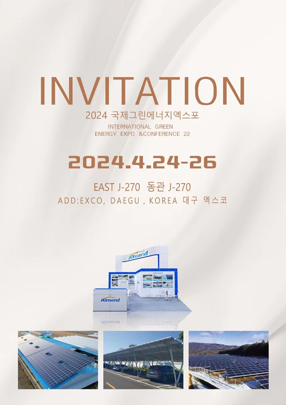 Die GREEN ENERGY EXPO 2024 wird bald in Korea stattfinden, die größte internationale Ausstellung für erneuerbare Energien in Korea und die führende internationale Ausstellung für erneuerbare Energien in Asien. Kinsend wird auf der Ausstellung verschiedene Photovoltaik-Montagesysteme vorstellen.