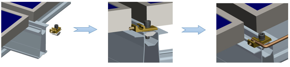 Die Kupferleitungen Montage, welche wird auch Ground Lug, genannt Verbinden Sie das gesamte System mit Draht durch Durchstechen des Eloxalfilms von rail, get ein Beleuchtungs- und Leckageschutz
