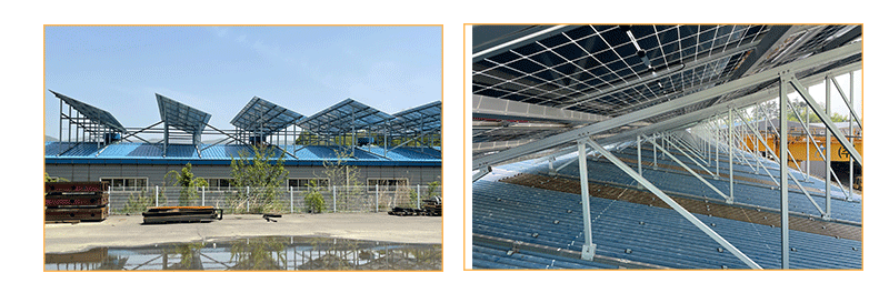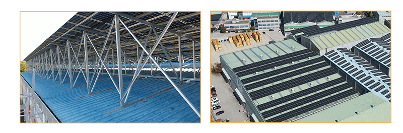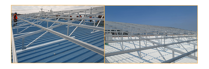 Das Metalldachmontagesystem eignet sich für Dacheindeckungen mit Wellblech , Trapezblech. L Füße. Die Blechdachlösung ist für fast alle Arten von Blechdächern verfügbar. Produkt mit hoher Festigkeit, das einer maximalen Windgeschwindigkeit von 60 m/s standhält. Das Hauptmaterial ist AL6005-T5 mit einer durchschnittlichen Eloxalschicht von 12 μm. Befestigungselemente bestehen aus Edelstahlmaterial, das sich durch  hohe Festigkeit und hohen Korrosionsschutz auszeichnet.  Geringe Montagekosten Jede Größe des Modulfeldes möglich Höhenverstellbar über Langloch in der Blechhalterung Geeignet für große Sparrenabstände Einzelheiten    Installationsort Trapez- und Wellblech Befestigung Auf Hochsicke genietet oder geschraubt Wirtschaftslayout Landschaftsportrait    Maximale Windgeschwindigkeit < 60m/s    Schneelast < 80cm    Standards AS/NZS 1170, DIN 1055, JIS C 8955:2011     Material Eloxiertes Aluminium 6005 T6, Befestigungsschraube und Mutter aus Edelstahl 304     Korrosionsschutz  Eloxiert     Garantie/Dauer  12 Jahre/mehr als 25 Jahre