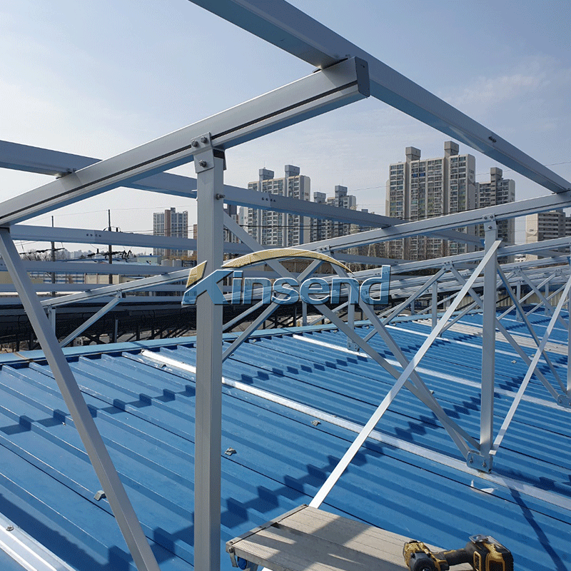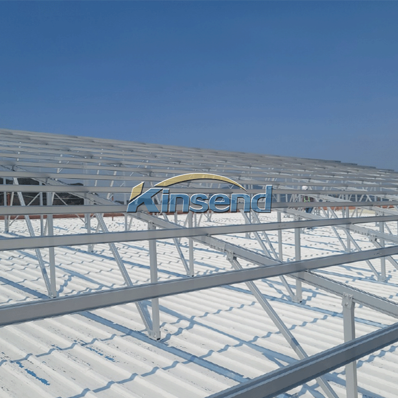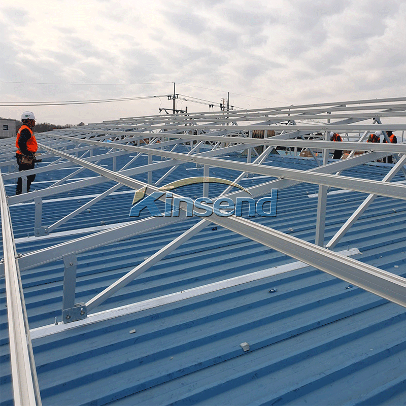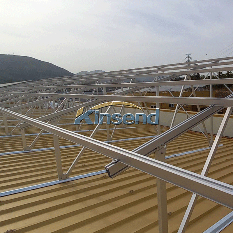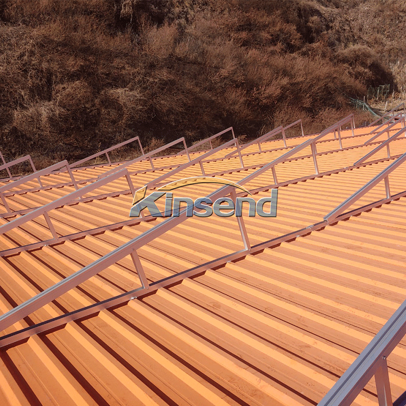 Kinsends ALuminum Solar-Metalldachmontagesystem verwendet eine eloxierte Aluminiumlegierungsstruktur, wodurch das gesamte System leicht, langlebig, recycelbar und hochfest ist. Außerdem haben kundenspezifische Basishalterung Kombinationen. Dank der flexiblen Höhen- und Winkeleinstellung ist das System für verschiedene Geländeformen geeignet. Die meisten Komponenten werden vor dem Versand vormontiert, sodass Bohren, Schneiden und andere Arbeiten vor Ort nicht erforderlich sind. Die Verriegelung muss lediglich angepasst werden, um die Installation abzuschließen.