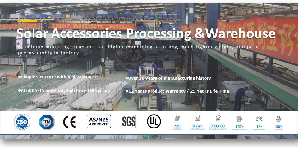 Das Hauptmaterial ist AL6005-T5 mit einer durchschnittlichen Eloxalschicht von 12 μm. Das einzigartige Design der Mittel- und Endklemmen wird in verschiedenen Arten von Solarmodulen verwendet. Ein spezielles Schienendesign kann die Installation einfacher und schneller machen. Die Teile wurden bereits im Werk vormontiert, um Ihnen bei der Installation Zeit zu sparen.