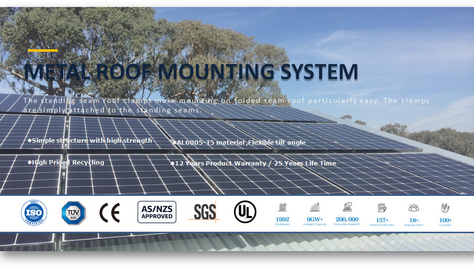 Die Stehfalzdachklemmen machen die Montage auf Faltfalzdächern besonders einfach. Die Klammern werden einfach an den Stehfalzen befestigt. Die Systeme entsprechen vollständig den internationalen Standards für Wind- und Schneelast.