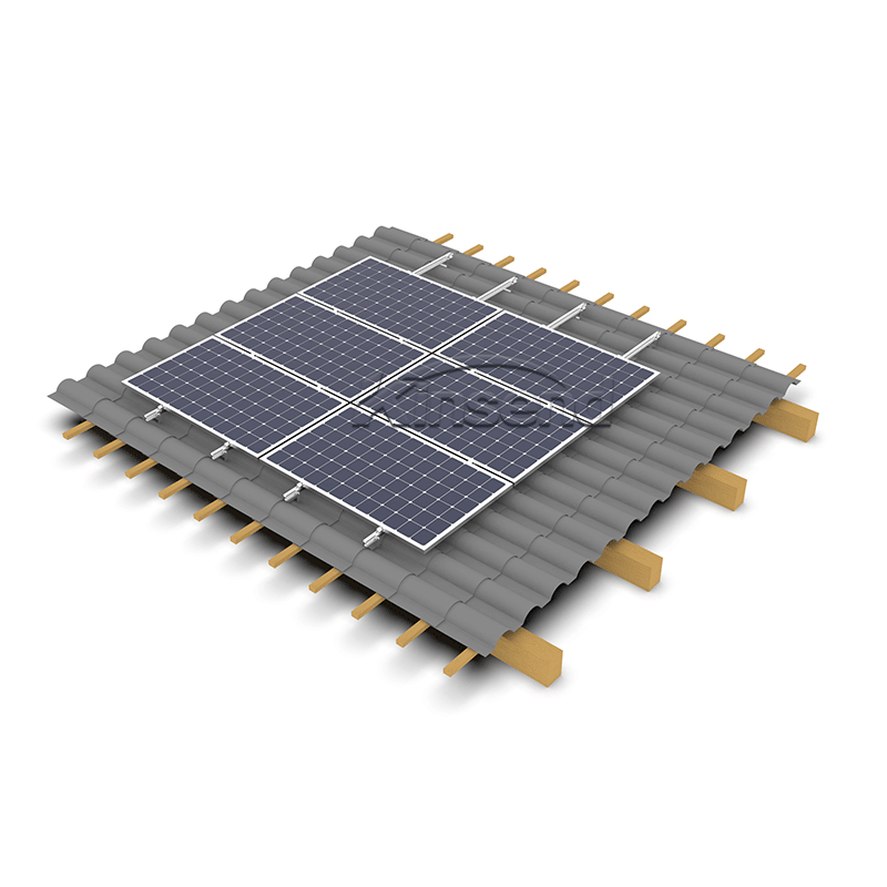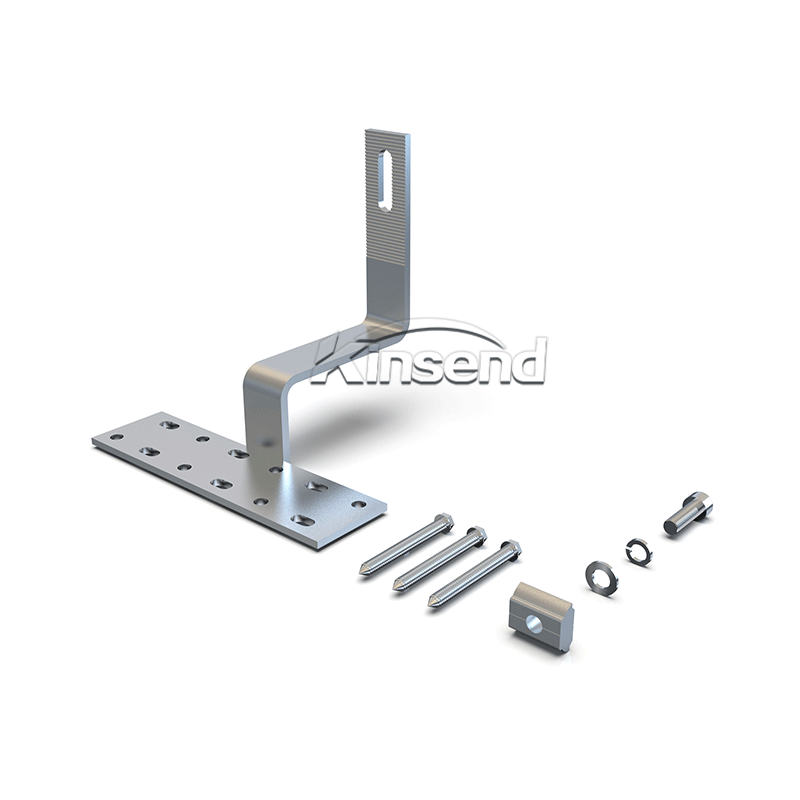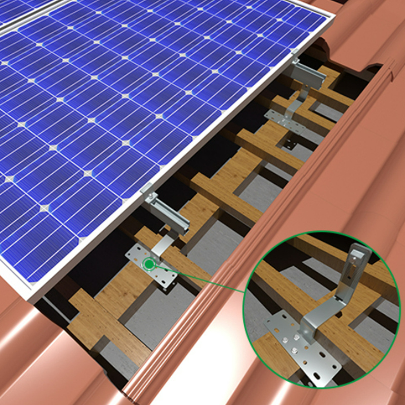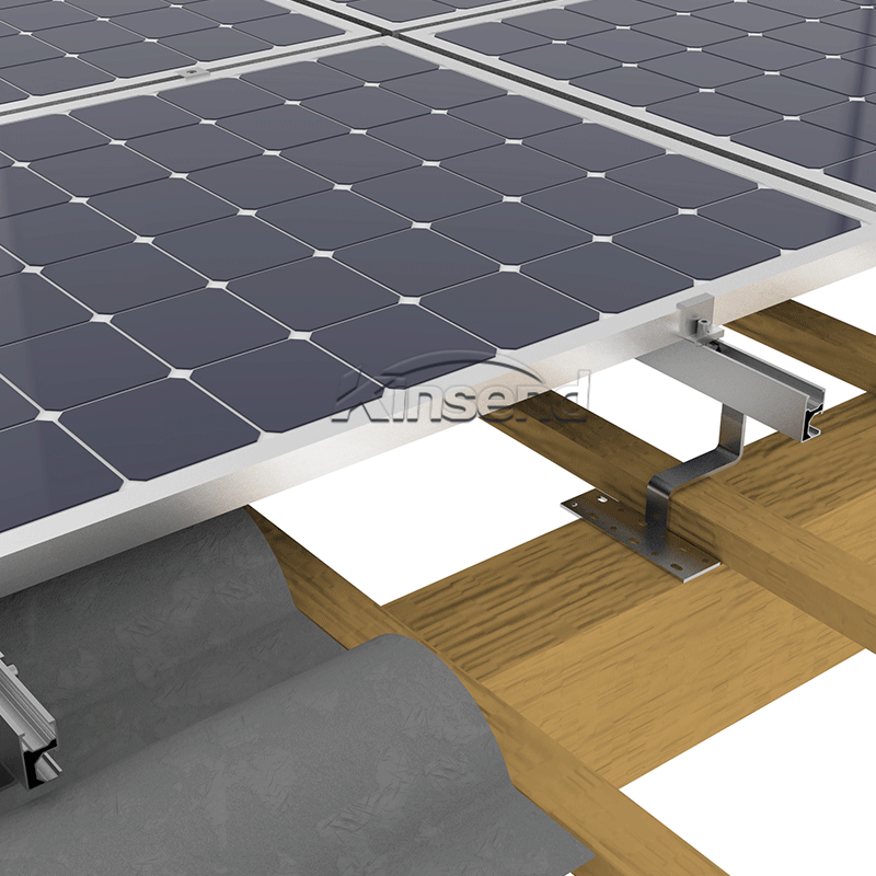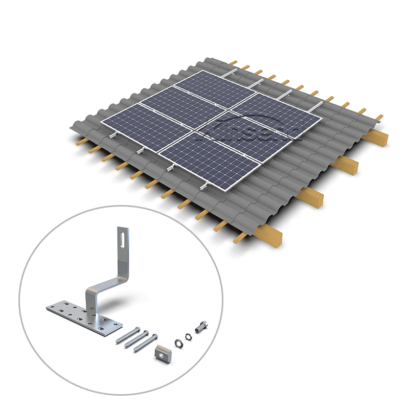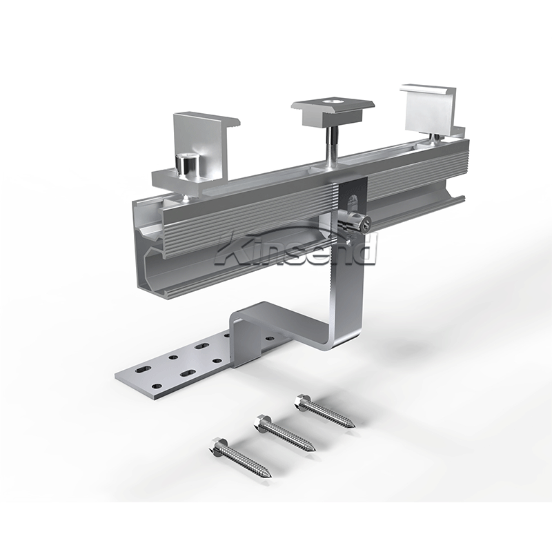Verwenden Sie einen universellen Edelstahl-Dachhaken für das Dachträger-Montagesystem , Edelstahl-Dachhaken-Installation mit selbstschneidender Schraube M6,3 * 80 mm, passend zur Aluminiumschiene , befestigen Sie das Solarmodul mit Modulklemmen. Eine einfache und schnelle Installationslösung