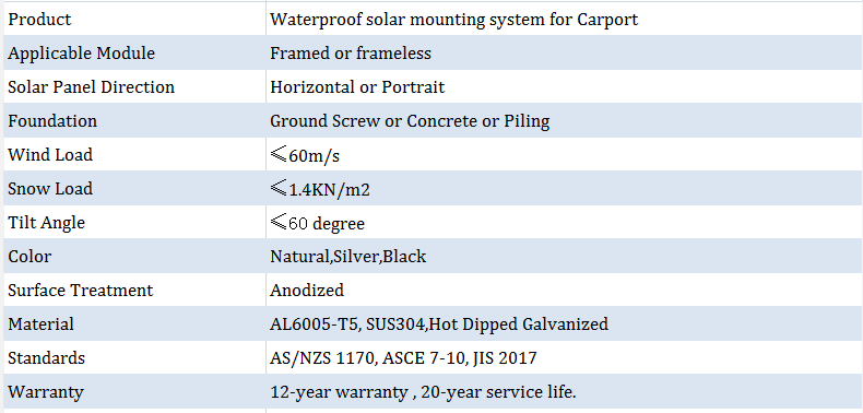 Hohe Korrosionsbeständigkeit, eloxierte Aluminiumprofile. Hohe Vormontage im Werk, um Ihre Installationszeit zu sparen. Bauen auf dem Parkplatz, wodurch Landressourcen gespart werden