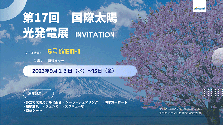 Kinsend lädt Sie zu einem Treffen auf der kommenden Japan-Ausstellung vom 13. bis 15. September 2023 ein. Auf dieser Ausstellung werden wir mehrere Designlösungen präsentieren. Bodenmontagesystem , Dachmontagesystem, wasserdichtes Montagesystem , Ausstellung mehrerer Modelle von Solarinstallationszubehör . Über die folgenden QR-Codes können die Ausstellungstickets erworben werden.